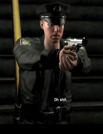 Gareth had been patrolling the nearby subway stop during "American Freedom", when Sam Fisher was chasing an Engineer leader through a subway train. Sam had cornered the Engineer, causing the him to grab a civilian as a hostage. Gareth was able to shoot and kill the Engineer, but pointed the gun at Sam, thinking he was an enemy. Sam was forced to surrender and was arrested by the surrounding officers.