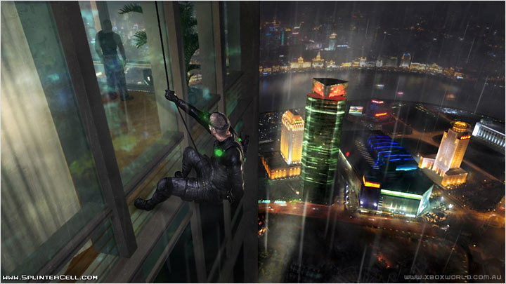 Two alternate single-player missions, eight all-new merged versus and co-op maps and interactive cutscenes. Daylight missions, in which Sam does not have his goggles. Also, in the regular areas of the JBA HQ, Sam's only maneuver is walk. Regenerating health (a similar element was introduced in Call of Duty 2) and a simple three-state (hidden/exposed/alert) stealth meter, as opposed to the past light and sound meters. The PlayStation 3 version includes an, as of yet, unnamed female Splinter Cell; in the Xbox 360 version, she's available in a download by Xbox Live. The computer hacking mini-game returns and new mini-games are featured that let you decrypt e-mails and defuse bombs. A new type of level, where Sam has a little less than a half-an-hour to complete multiple objectives. He can choose what order to do them, and does not have to do all of them. The more you do for one side (or both sides), the more trust you can receive.